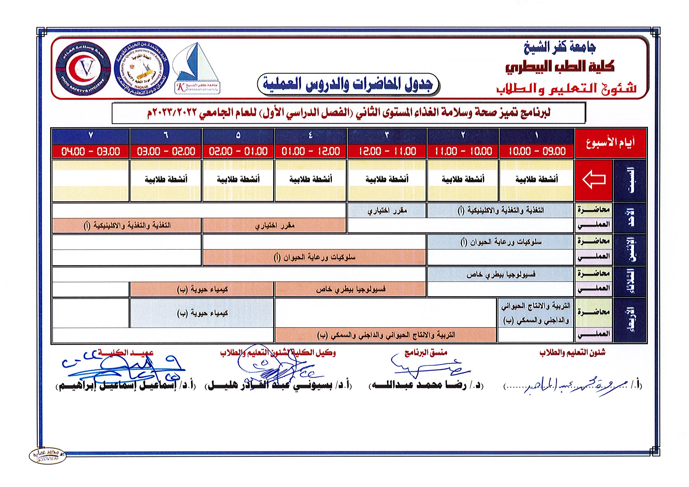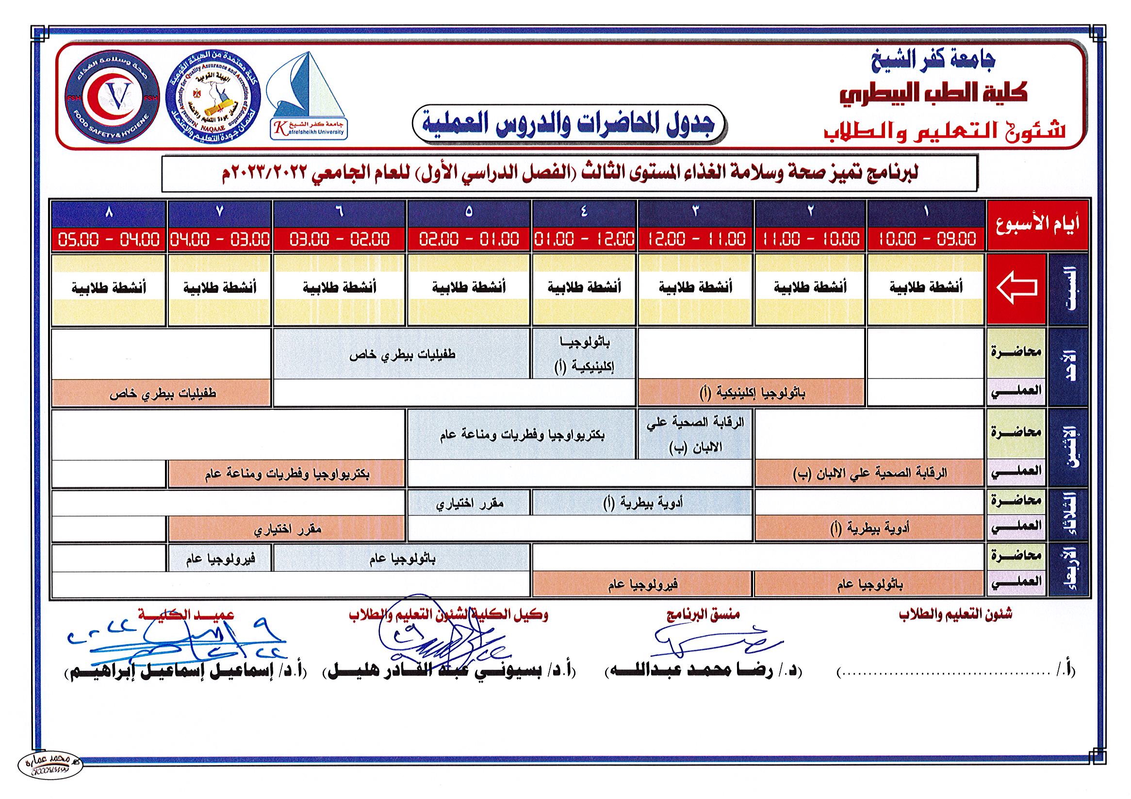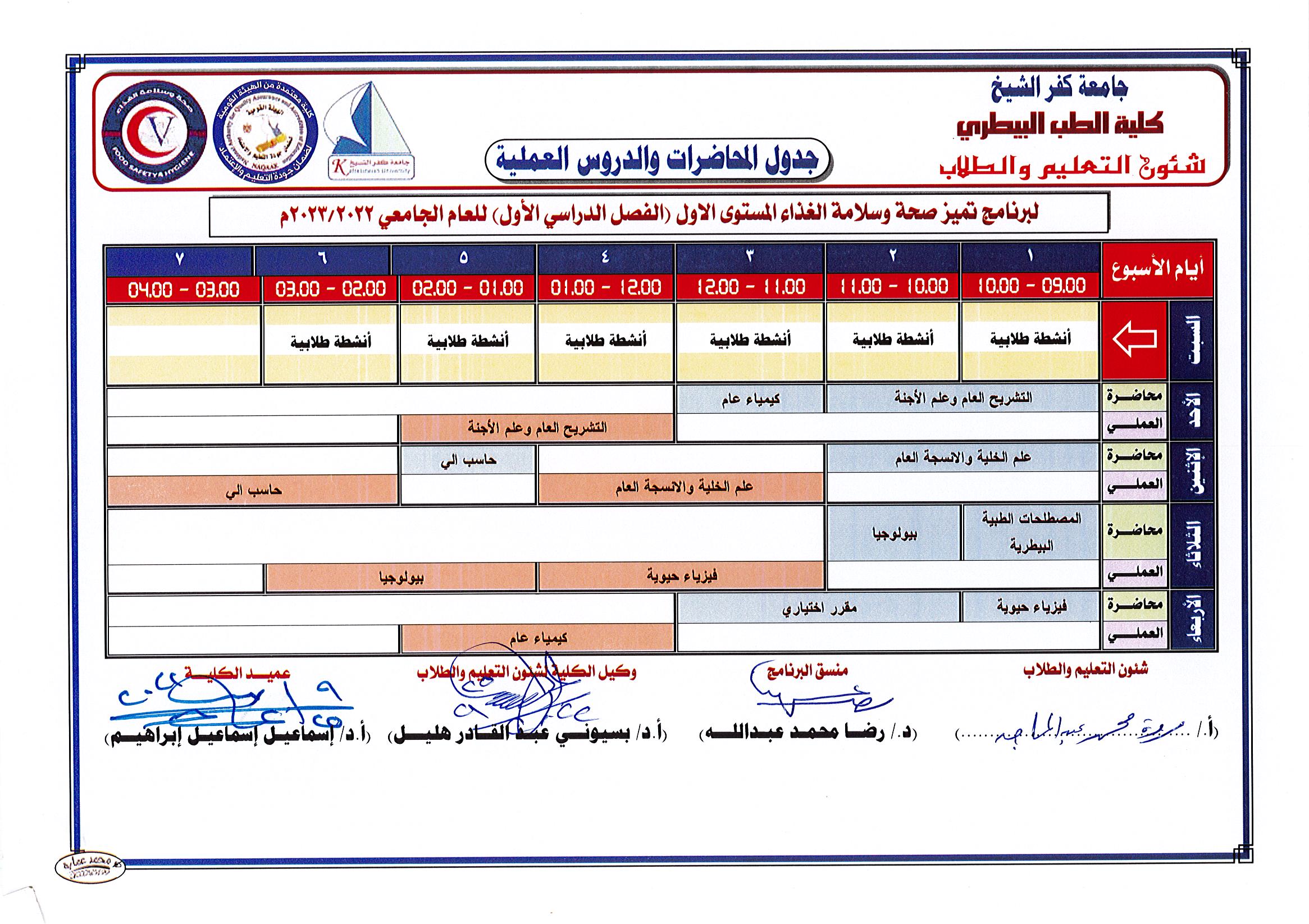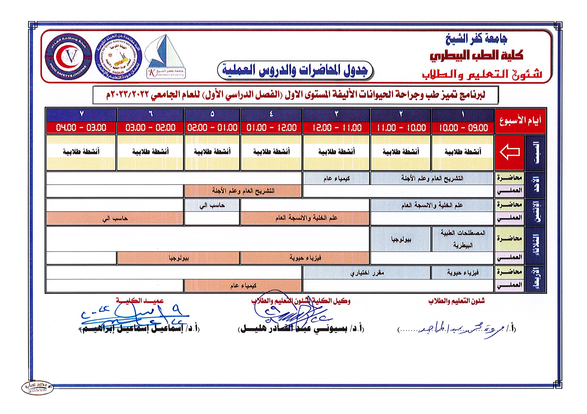 الجداول الدراسية الفصل الدراسى الاول مميز للعام الجامعى 2022/2023