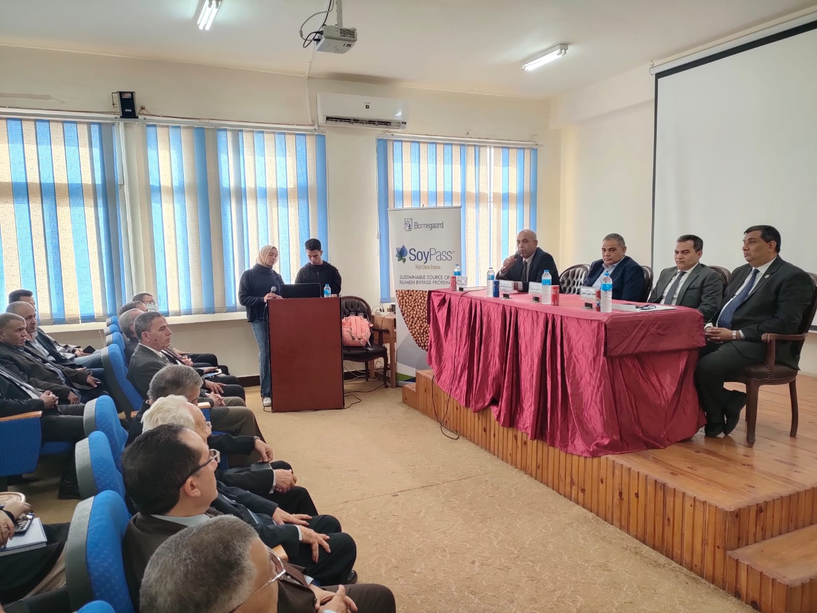 عن تخفيض تكاليف اعلاف الابقاروالاحتفاظ بكمية وجودة اللبن المنتج وقد قام بالقائها الدكتور عبد الناصر بكر رئيس