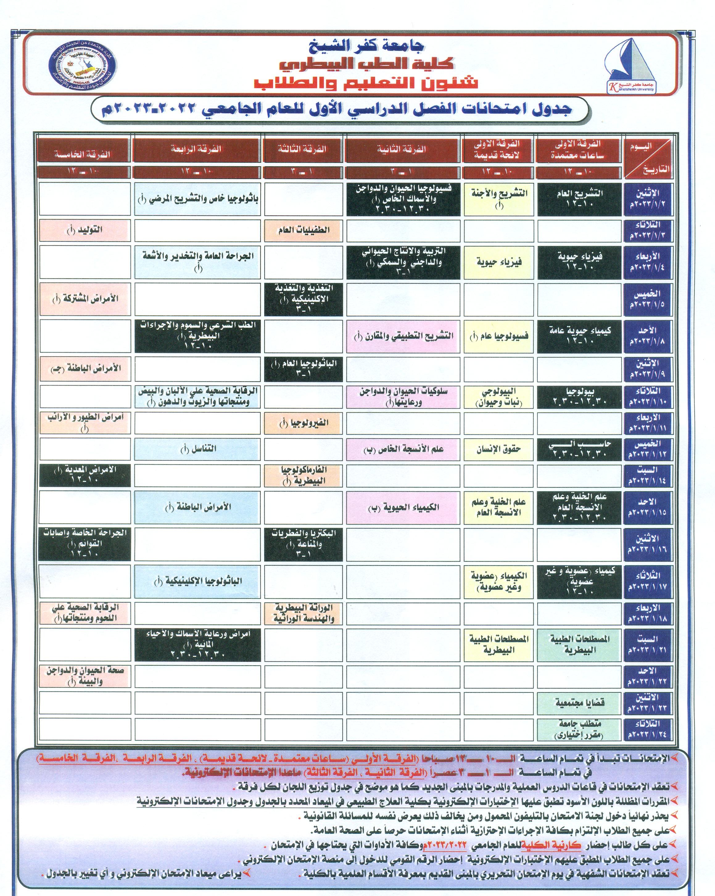 جدول امتحانات الفصل الدراسى الاول للعام الجامعى 2022/2023