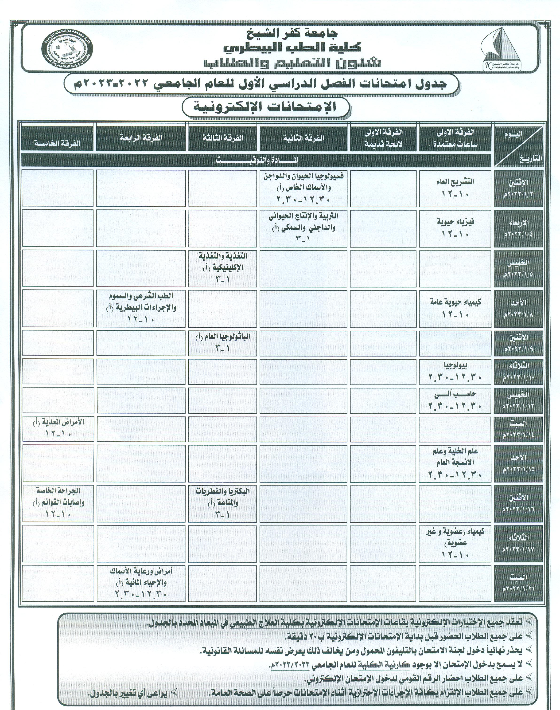 جدول الامتحانات الالكترونى للفصل الدراسى الاول 2022/2023
