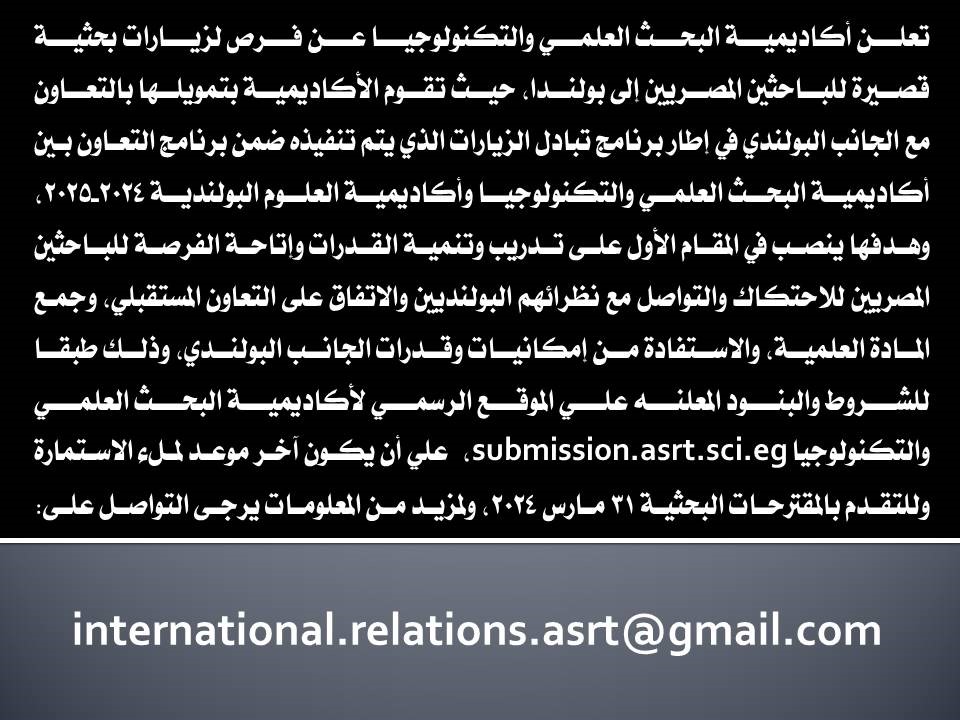 فرص لزيارات بحثية قصيرة للباحثين المصريين إلى بولندا