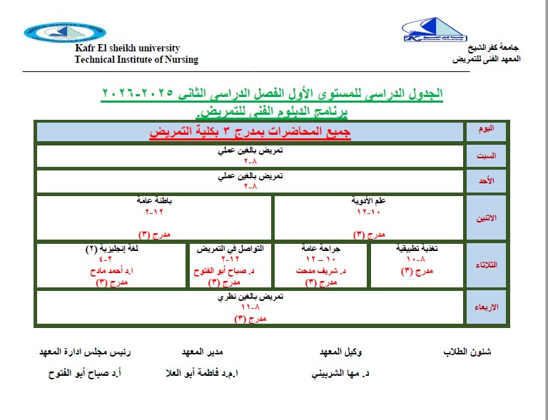 برنامج الدبلوم الفنى فى التمريض